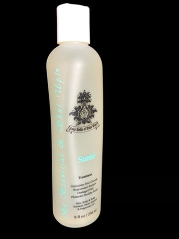 Santé! Treatment is the perfect hair and all over body moisturizer and conditioner. Perfect for hair and scalp treatments, continued use nourishes hair for improved elasticity, strength and healthier looking hair and skin. You’ll be amazed with the condition, shine and incredible body! It is the perfect hot oil treatment that doesn’t need warming as it stimulates regrowth and repairs damages without the weighting down of an after-shampoo treatment.