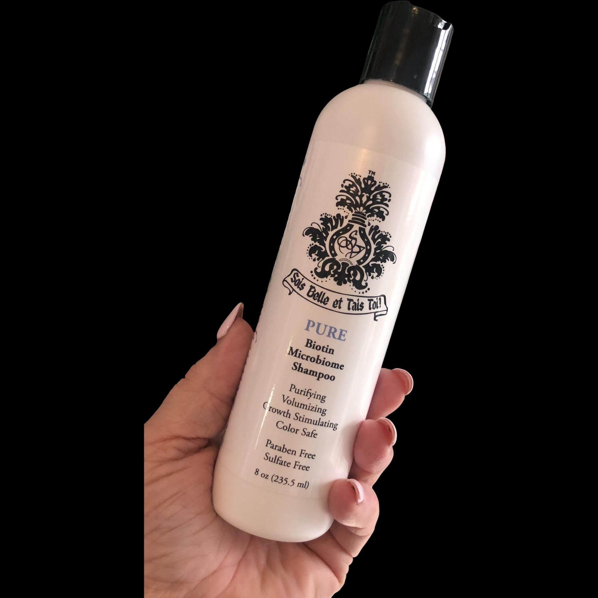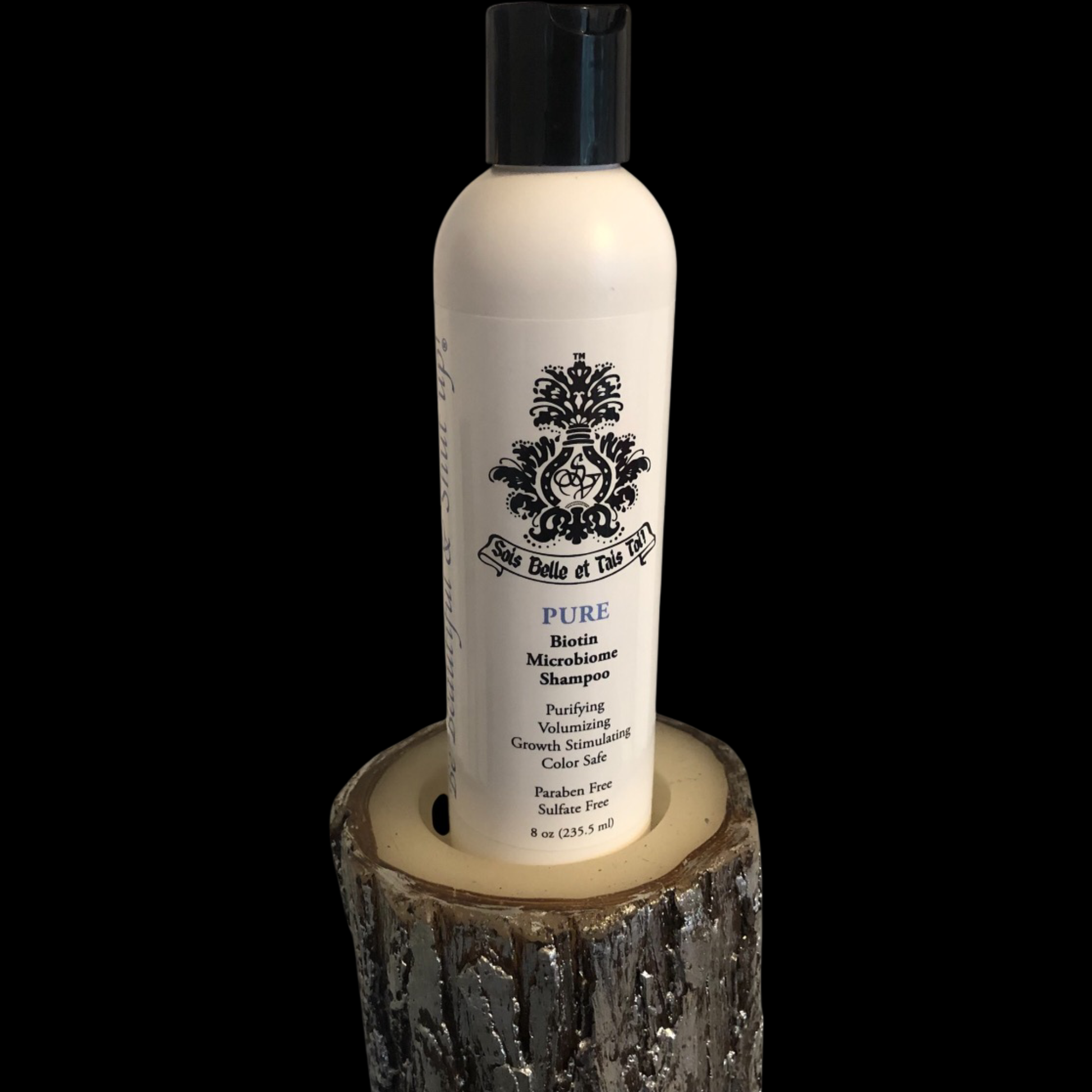 PURE shampoo gently purifies the scalp & hair, nourishes, promotes thicker hair as it stimulates new growth.