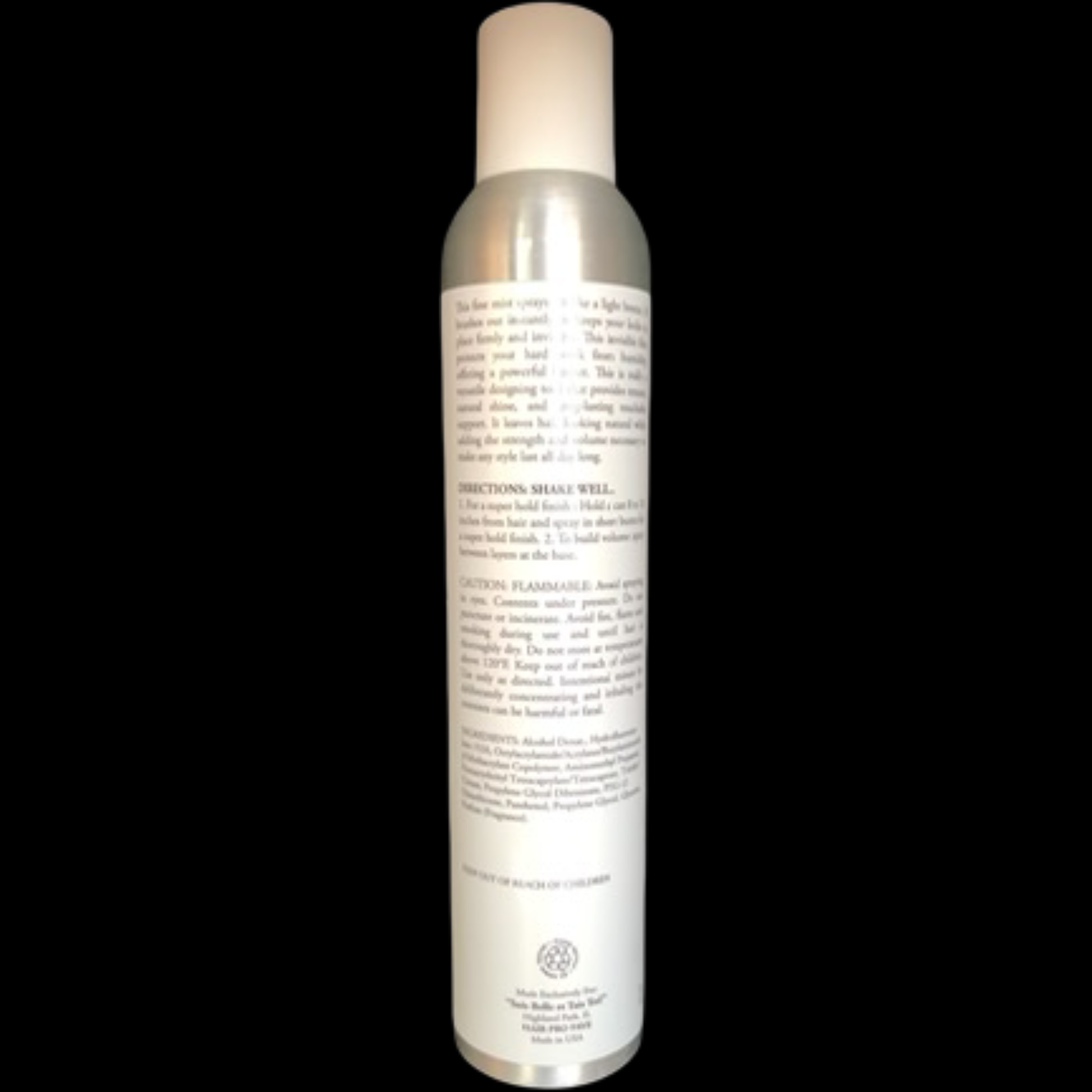 - For a super hold finish: Hold a can 8 to 10 inches from hair and spray in short bursts for a super hold finish. 2. To build volume: spray between layers at the base.
