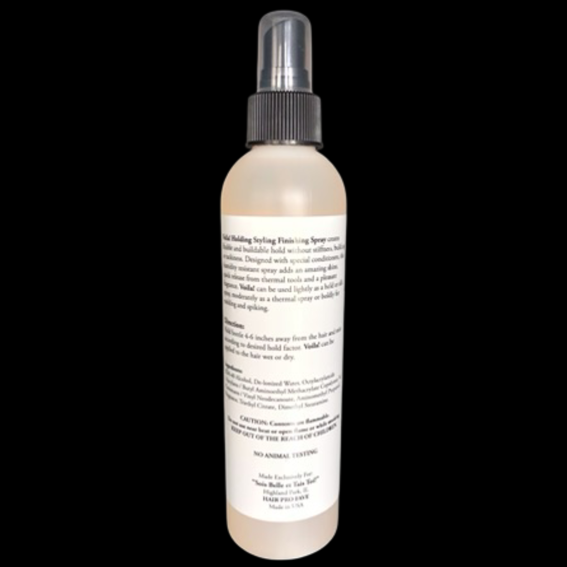 Viola! Holding Styling Finishing Spray creates flexible and buildable hold without stiffness, build up or tackiness. Designed with special conditioners, this humidity resistant spray adds an amazing shine, quick release from thermal tools and a pleasant fragrance. Viola! can be used lightly as a hold or silk spray, moderately as a thermal spray or boldly for molding and spiking.